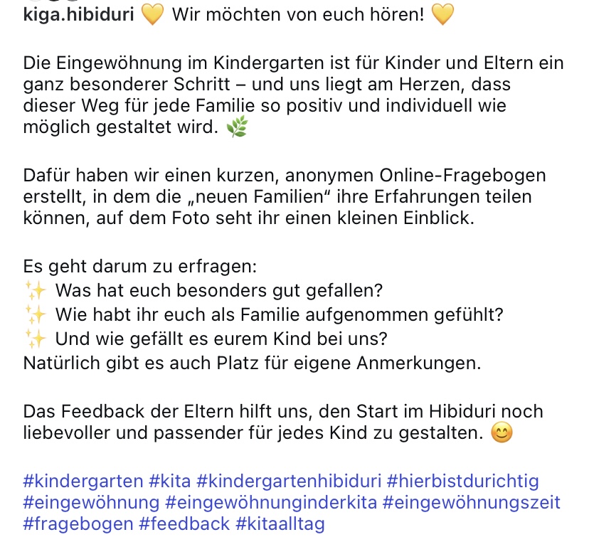 Elternumfrage zur Eingewöhnung